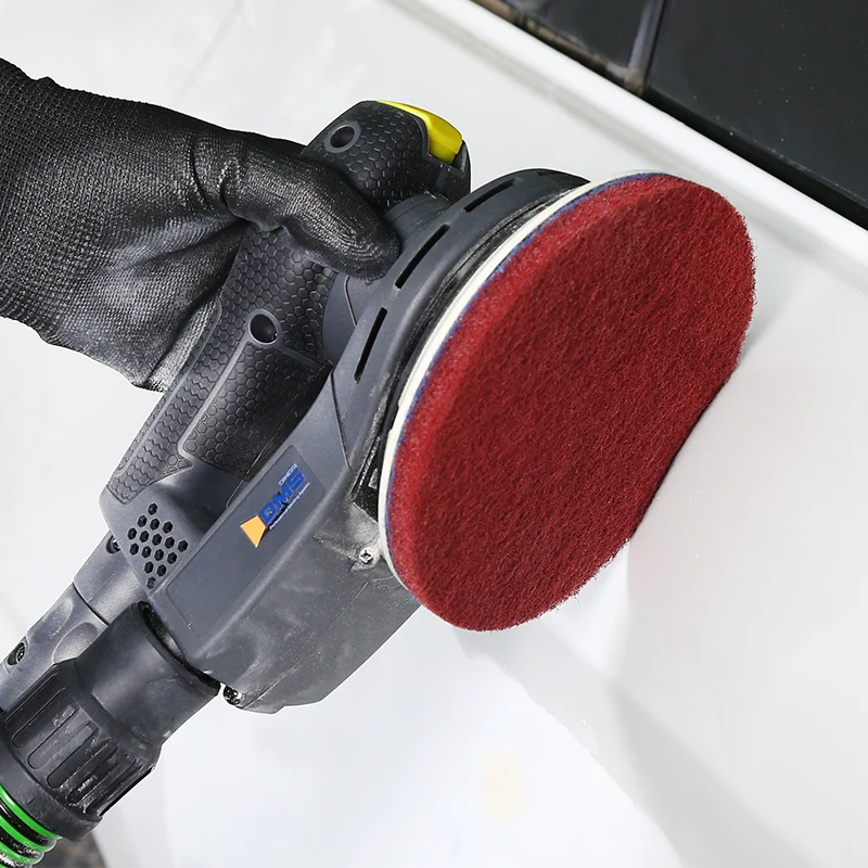 Den innovative tredimensionelle fiberstruktur giver Red Non-Woven fremragende fleksibilitet og deformationsgenvinding. Den kan bøjes og foldes frit, perfekt tilpasset komplekse geometrier såsom hjørner og buede overflader, og opnår uregelmæssige overfladebehandlinger, som traditionelle hårde slibemidler ikke kan udføre.